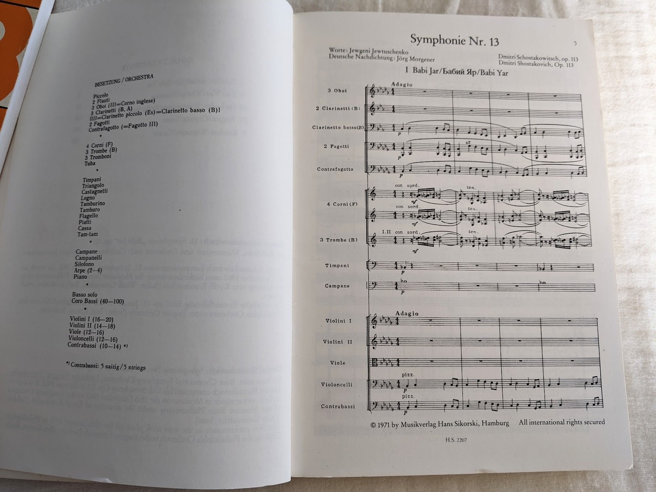ショスタコーヴィッチ:交響曲第13番《バビ・ヤール》Op.113 変ロ短調 ミニチュアスコア シコルスキ版